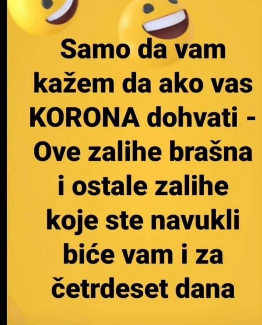 Trenutno je koronavirus - slobodno možemo tako da kažemo - jedina tema u našem društvu. To naravno znači da se i šale prilagođavaju novonastaloj situaciji. Izdvojili smo neke upečatljive...