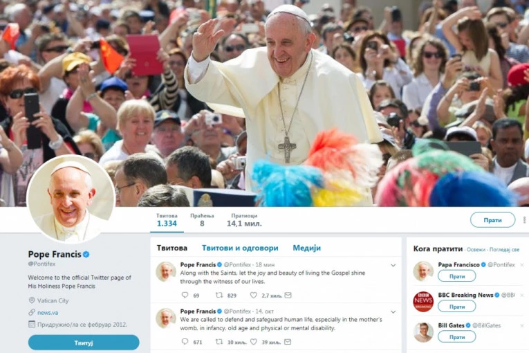 Papa Franjo je jedan od NAJPOPULARNIJIH LIČNOSTI TVITERA?!