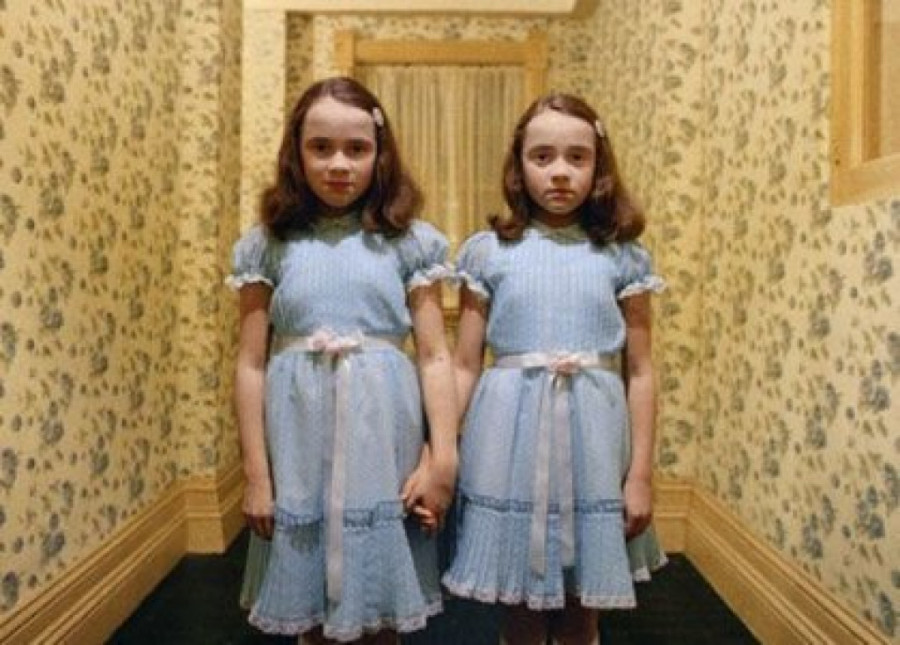 Luiz i Lisa Burns nedavno su napunile 52 godinu. Imali su 12 godina kad ih je Stenli Kjubrik angažovao za potrebe film. Reditelj je bio sigran da hotel Vidikovac ne može da bude jezivo mesto bez dve devojčice koje se drže za ruke i stoje na kraju dugog hodnika.