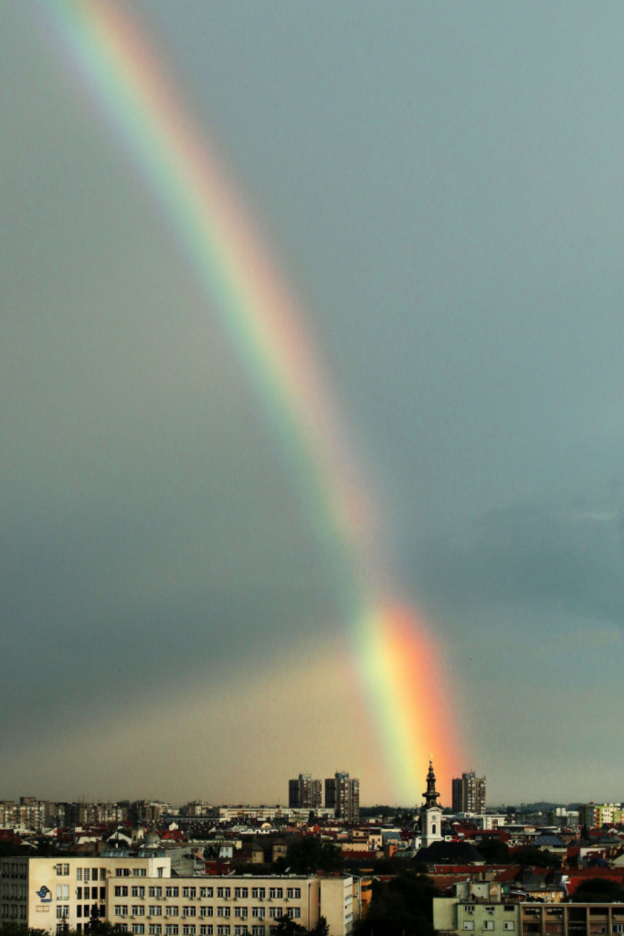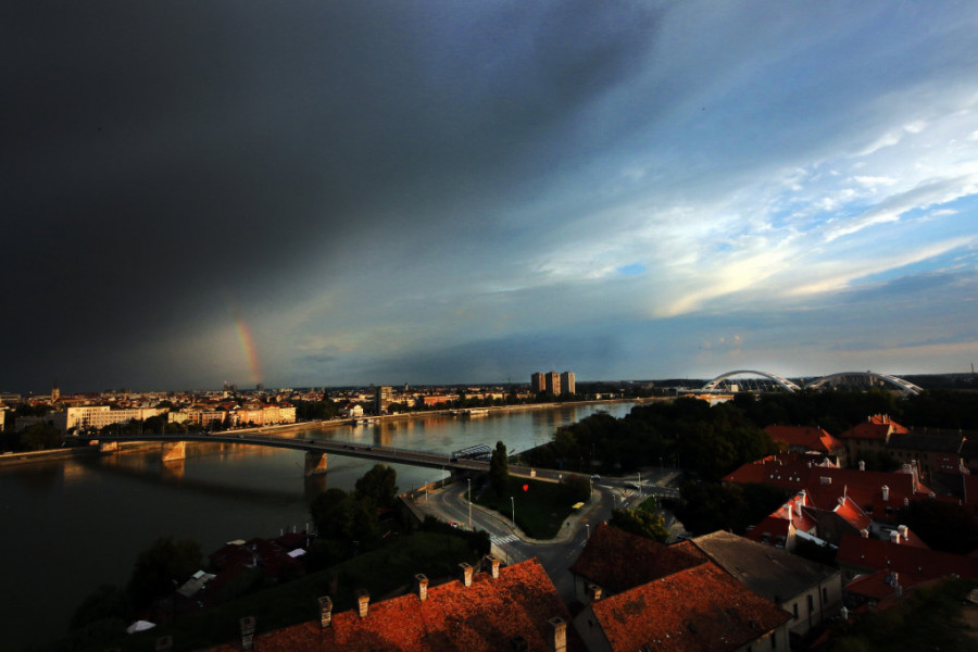 Foto: Tanjug/J. PAPPriroda je pokazala svoje umeće, a duga koja je zagrlila ovaj grad nije prošla neopaženo.