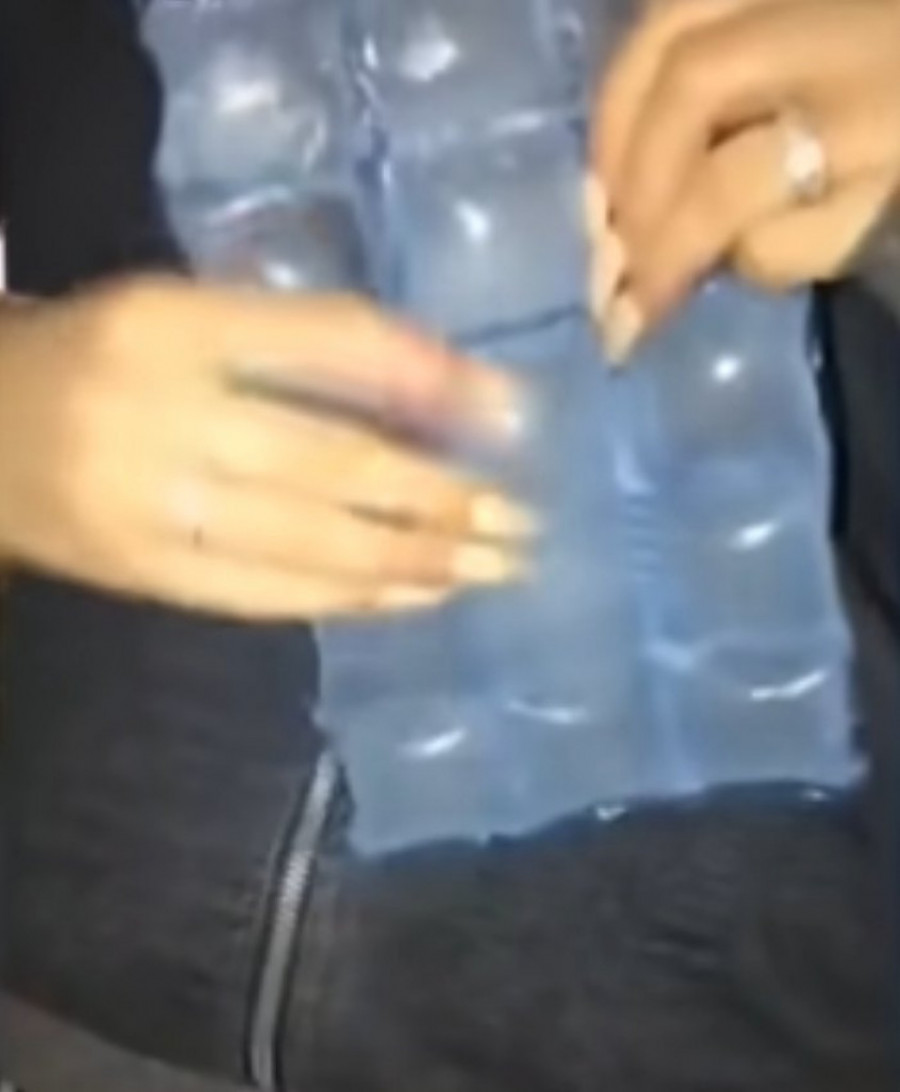 Ona je odvojila sve kockica leda odjednom u kesici i potom uzima koliko joj treba, dok ostalo stoji odvojeno. Pri tome kesica poprima oblik obične kesice i pušta sve kocke na dno, spremne na upotrebu.