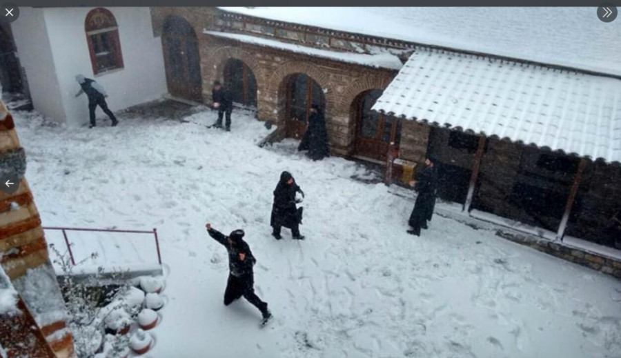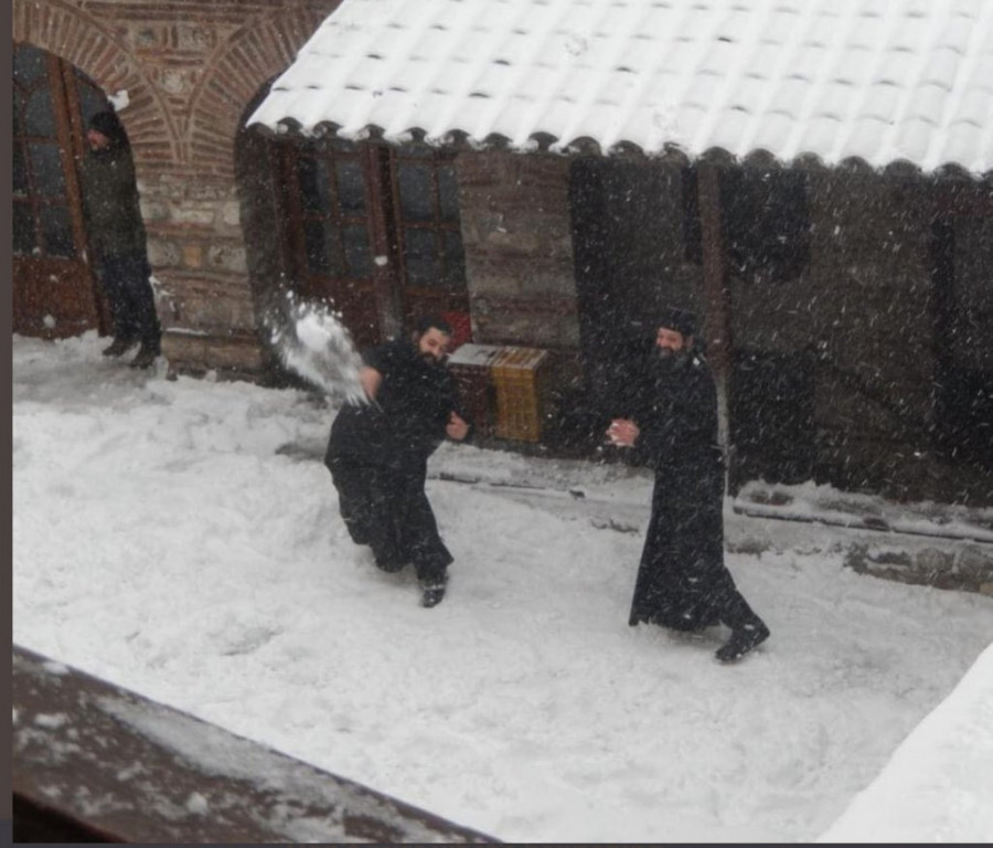 (FOTO GALERIJA) DIVNA SU TVOJA DELA, GOSPODE! Pogledajte kako se monasi grudvaju na Svetoj gori! VAŽNO JE ZADRŽATI DETE U SEBI!