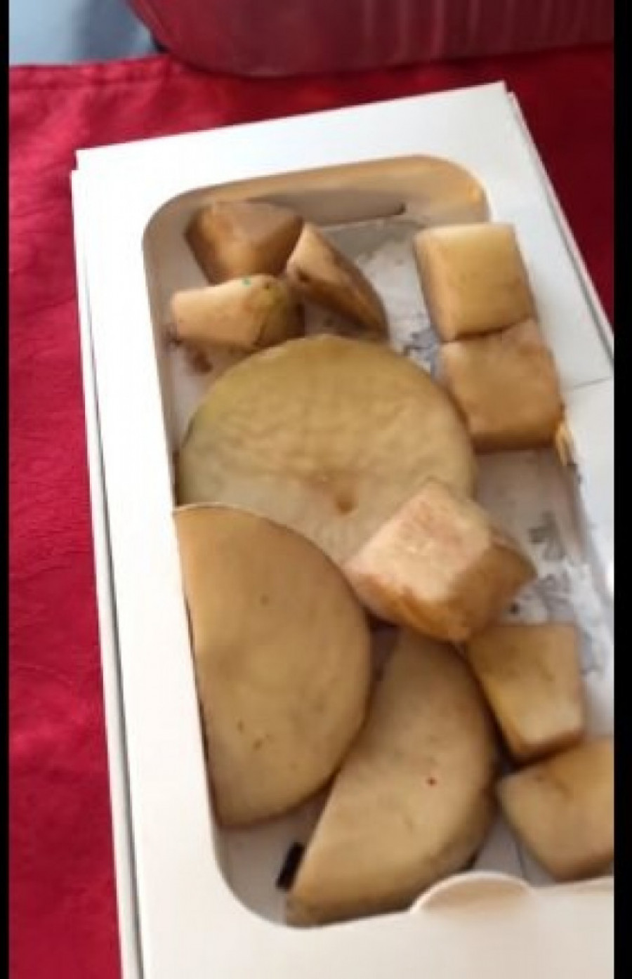 Ali, kada se vratila kući, kaže da je bila užasnuta kada je videla da je kutija zapravo bila napunjena sitnim komadima krompira.