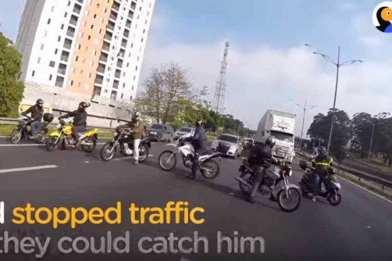 Grupa bajkera zaustavila je saobraćaj kako bi uhvatila kuče koje je trčalo po auto-putu.