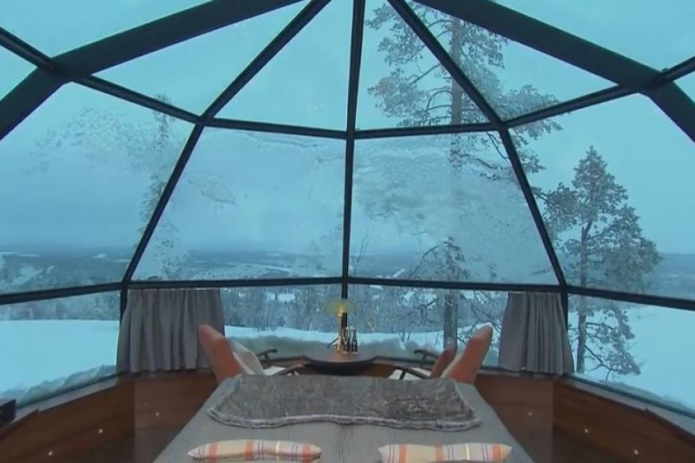 Foto: youtube.com/VSPfinlandSvaka kabina ima klima uređaj, grejanje i specijalne prozore koji se ne magle. U vikendicama ćete naći malu kuhinju, kupatilo sa tuš kabinom i bežični internet. Pravi hit su kreveti, koji imaju poseban mehanizam i možete ih postaviti tako da se divite nebu dok odmarate na njemu.