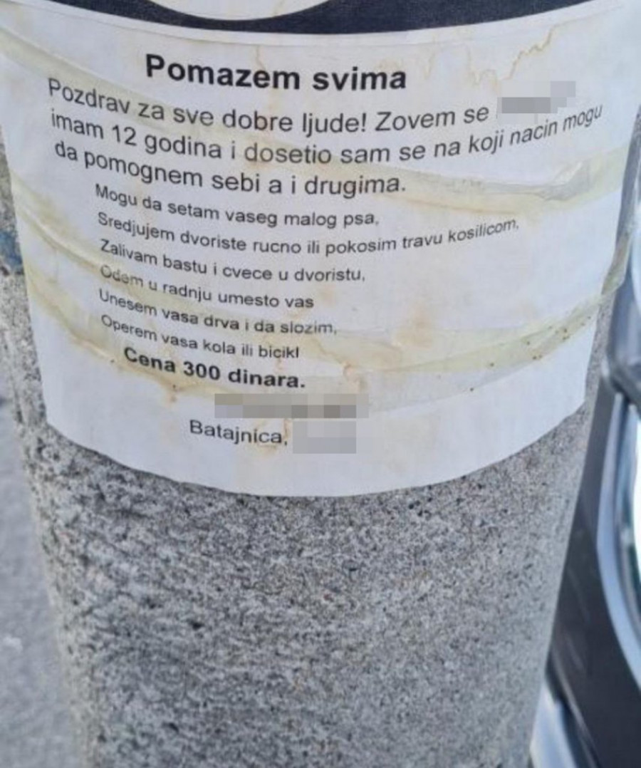 Mali Nebojša postavio je oglas u kom navodi da za obavljanje lakših poslova traži 300 dinara, a ova objava izazvala je lavinu komentara na društvenim mrežama.