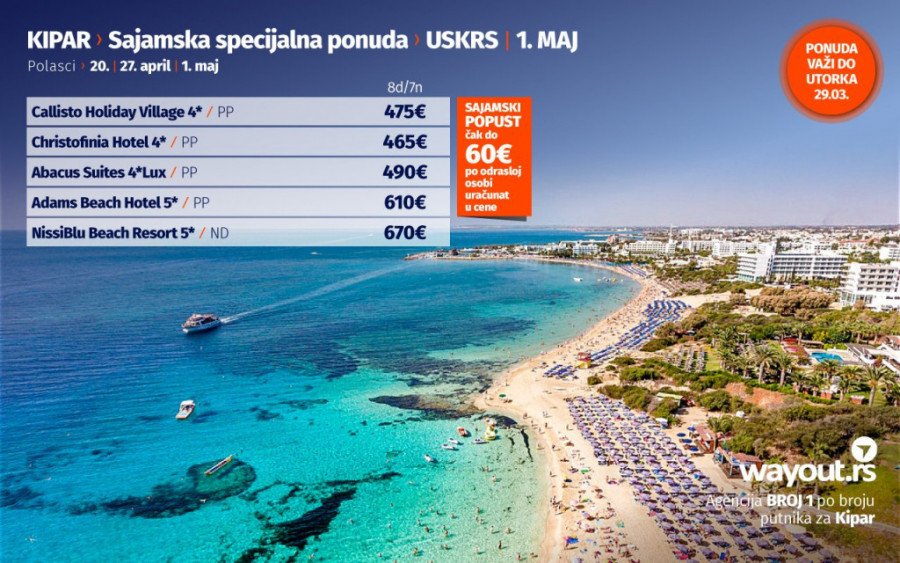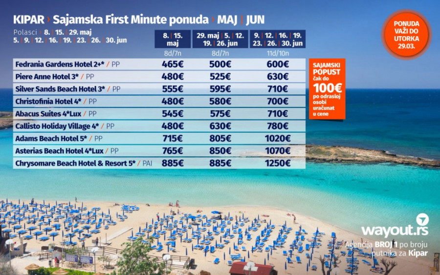 Sajamska First minute ponuda za Kipar