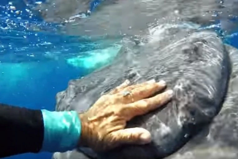 Foto: youtube.com/Caters ClipsNaime, pomorski biolog Nen Hauzer kaže da ju je 23 tone težak grbavi kit zaštitio od tigar-ajkule tokom nedavno sprovedene istraživačke ekspedicije.