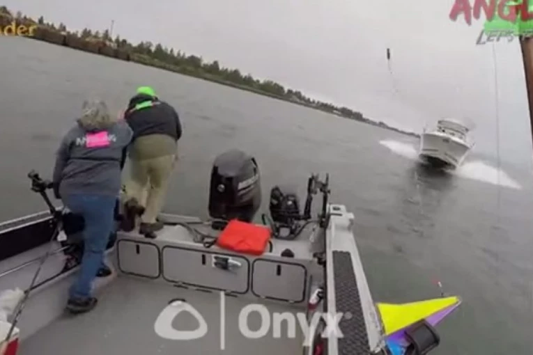 Foto: youtube.com/CAPSTANU pitanju je momenat u kojem pecaroši u čamcu mašu vozaču jahte Marlinu Larsenu (75) koja juri ka njima, ali on ih ne vidi i zakucava se direktno u njih, a oni, srećom, uspevaju da skoče u vodu na vreme.