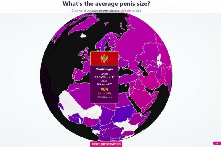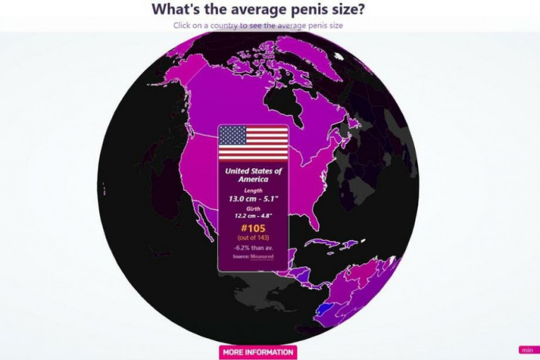 Za sve one koji su se možda pitali kako s dužinom i obimom stoje muškarci u drugim krajevima sveta, veb sajt All size matter objavila je kartu sveta na kojoj je prikazana prosečna veličina penisa. Jednim klikom se mogu videti ove zanimljive informacije.