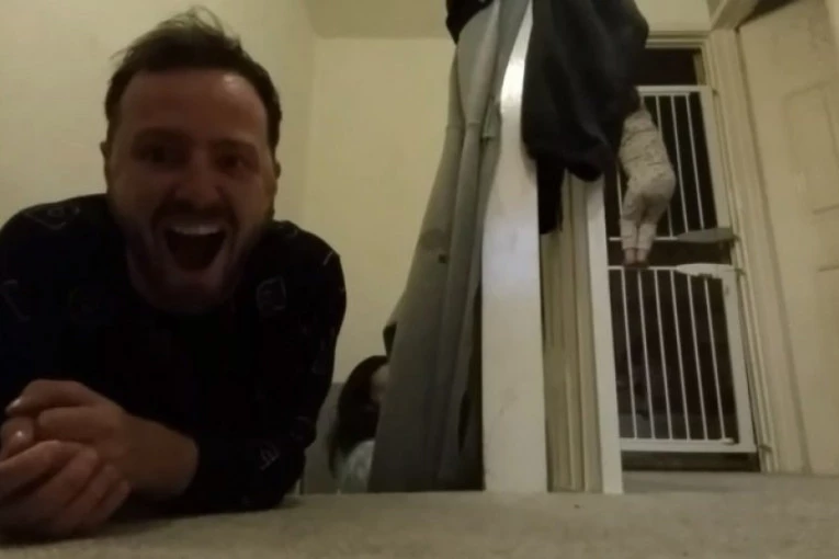 Tata je potom vratio devojčicu u krevet, ali je znao da neće biti mirna sve dok ne pobegne, pa je postavio kameru i sakrio se iza zida legavši na stepenice.