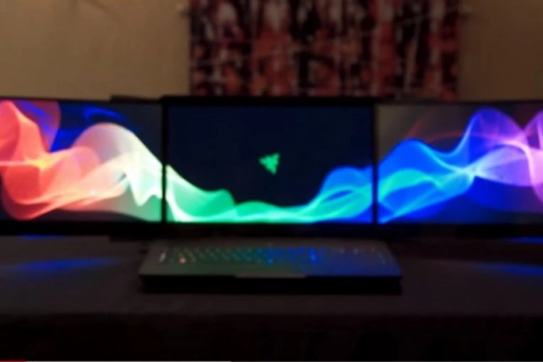 Dolazi s tri 17.3-inčna 4K ekrana, odnosno ukupno 11520x2160 piksela radne površine. Ekrane možete da izvučete iz središnjeg dela, a za njihov rad zaslužna je Nvidijina Surround View tehnologija koja će sliku iz iste aplikacije razvući preko više monitora. Razer navodi i da će ga kreativci ceniti jer nudi 100 odsto Adobe RGB preciznosti boja.