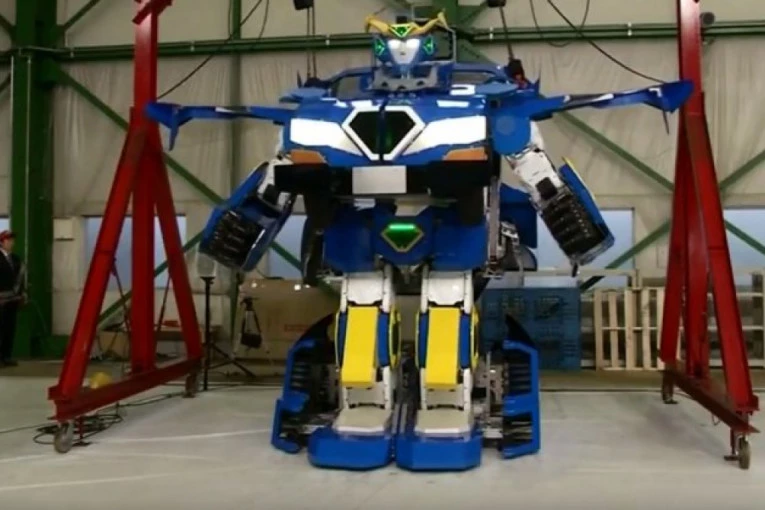 Plavo-beli robot visok 3,7 metara može da preveze dva putnika kada se transformiše u automobil.