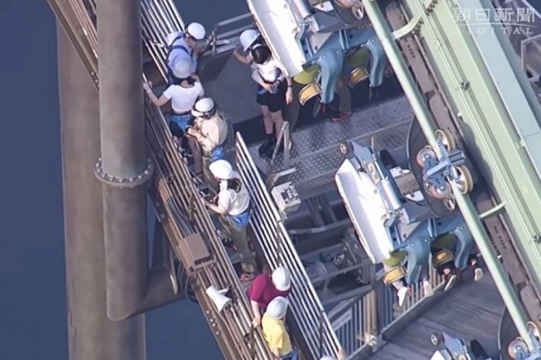 Više od dva sata 64 ljudi visilo je u vazduhu u utorak zbog hitnog zaustavljanja rolerkostera u zabavnom parku "Juniverzal studija" u Osaki, u Japanu.