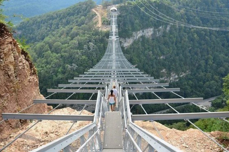 Svim ljubiteljima nadmorskih visina i dobrog pogleda zastaje dah na uskom rešetkastom mostu nad provalijom u skaj parku, koji je deo nacionalnog parka Soči na Zapadnom Kavkazu.