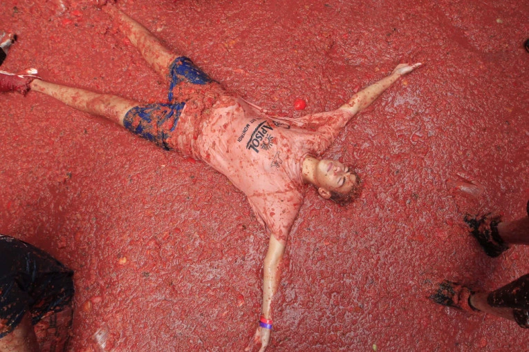 Oko 145 tona paradajza upotrebljeno je tokom ovogodišnjeg festivala "Tomatina" u španskom gradu Bunjolu, gde se hiljade ljudi okupilo kako bi učestvovalo u međusobnom gađanju paradajzom.