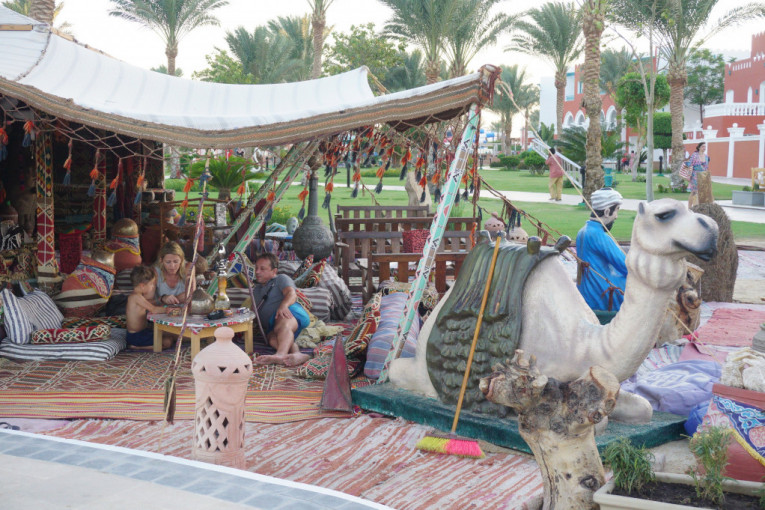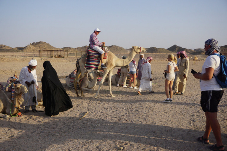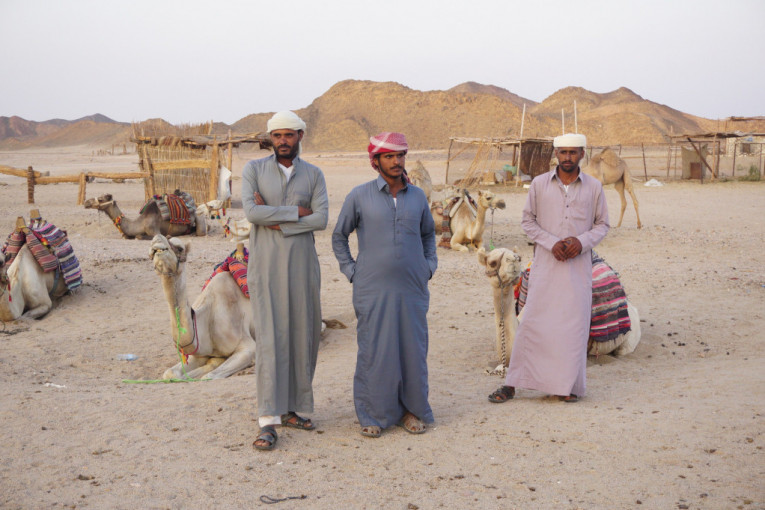 Foto: Časlav VukojičićZa razliku od nekih drugih arapskih zemalja koje su napravile "lažna" beduinska sela kako bi privukli što više turista, u blizini Hurgade i dalje žive Beduini podeljeni na plemena. Istina je da su i oni počeli da hvataju korak sa 21. vekom u smislu da koriste telefone, imaju manje-više isti program za posetioce koji se ovde zapute u sklopu safari-izleta. Ali ono što ih ipak izdvaja od ostalih Egipćana jeste beduinski jezik i život u plemenskim zajednicama. Prilično su srdačni, njihova deca obožavaju putnike namernike, a i navikla su da im donose slatkiše, igračke... Ko želi, u beduinskom selu može jahati kamile i konje, naučiti kako se pravi njihov tradicionalni hleb, a nakon toga se odlazi na večeru pod vedrim nebom koju upotpunjuje nastup sa trbušnom plesačicom, dervišima, egzibicionistom kome ekseri i staklo ne mogu ništa...