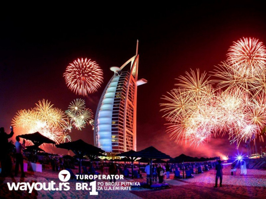 Foto: Promo fotoAko želite izbliza da doživite ovaj spektakl, dok brodovi krstare, šarena svetla vatrometa prave light-show žurkama na plaži, osvetljavaju ulice prepune ljudi, zakoračite u sledeću godinu uz šou kakav se retko viđa. Wayout, touoperator broj 1 po broju putnika za Dubai iz celog regiona, pripremio je novogodišnju ponudu, sa dodatnim popustom na cene u iznosu od 100€ po osobi. Polasci su 27, 29 i 30. decembra u trajanju od 7 ili 8 dana.