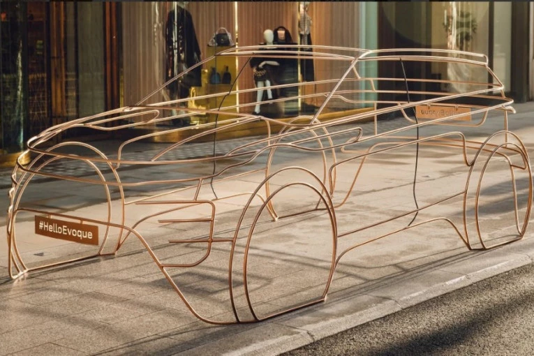 Foto: Printskrin: Twitter.com/carwowLend Rover je 2015. tadašnji Rendž Rover Ivok Konvertabl najavio serijom žičanih skulptura u prirodnoj veličini vozila, a za sličnu najavu odlučio se i sada, povodom premijere druge generacije modela Ivok.