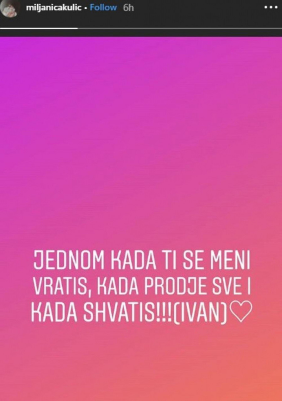 - Jednom, kada ti se meni vratiš, kada prođe sve i kada shvatiš!!! (Ivan) - napisala je Miljana i stavila srce uz svoju objavu.