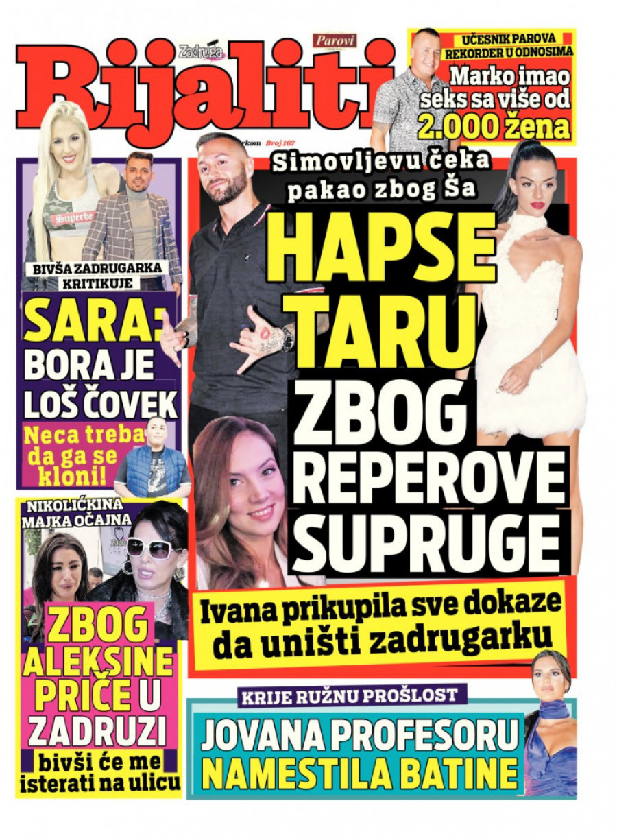Foto: youtube.com/Zadruga OfficialU ovom broju donosimo vam, najsvežije i najšokantnije priče o Tari Simov, Nenadu Aleksiću Ša, Sari Reljić, Aleksandri Nikolić, ali i drugim učesnicima rijalitija Zadruga i Parovi.
