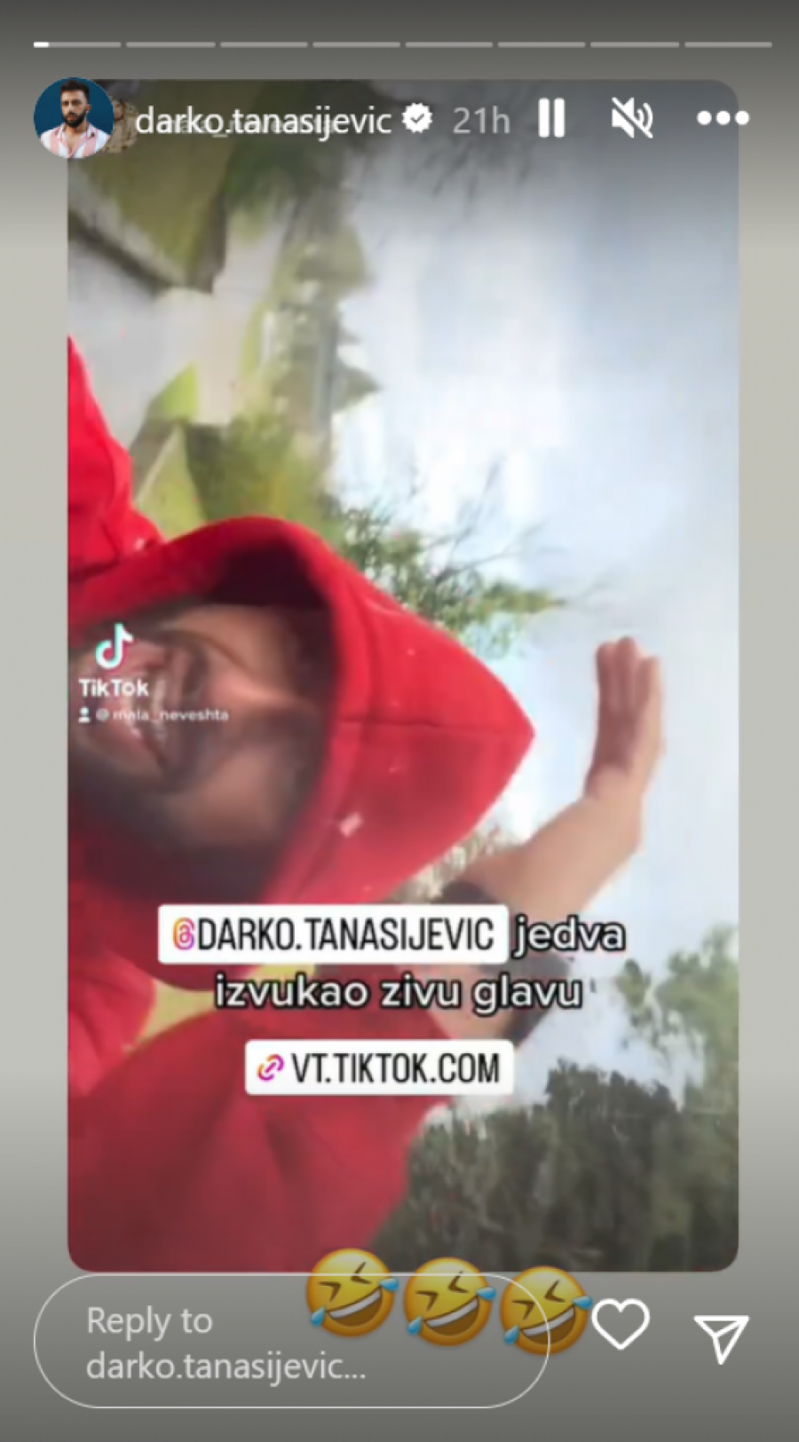 Naime, kako je sve iznenadio jučerašnji grad, voditelj se zatekao van, pa jedva izvukao živu glavu, čemu se kasnije i sam smejao.