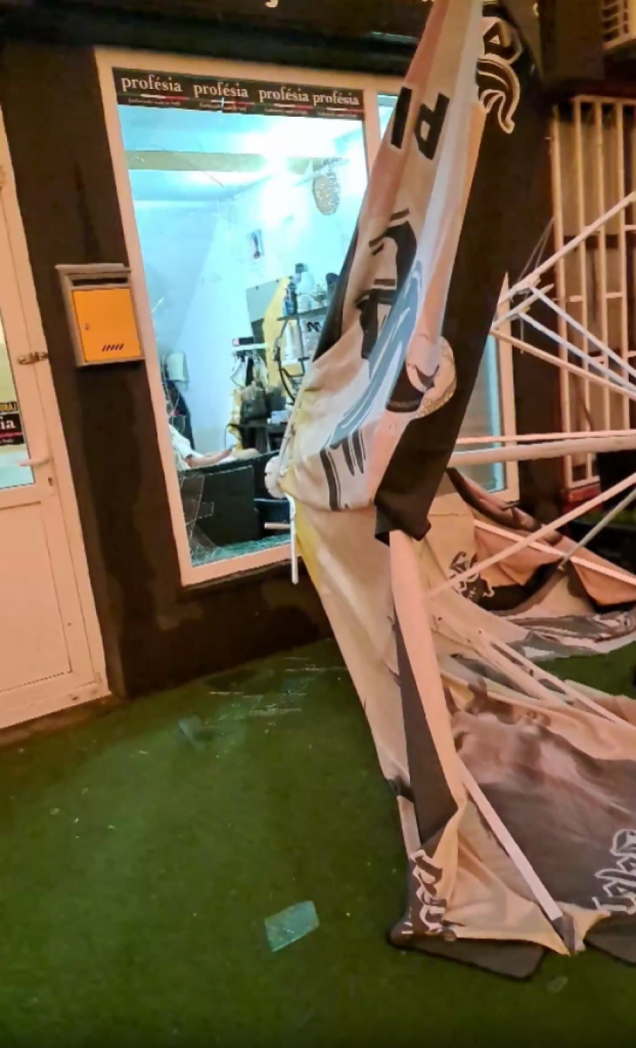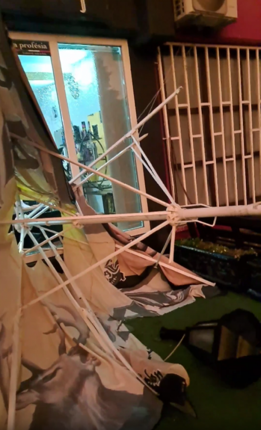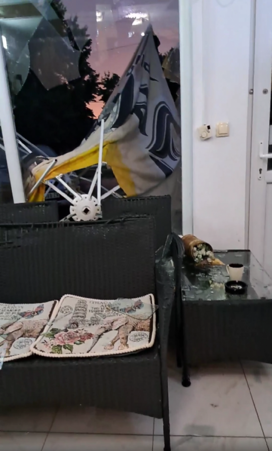 Superćelijska oluja uništila popriličan deo imovine. Naime, jak vetar, koji je lomio drveće, čupao krovove i nosio sve pred sobom, srušio je i suncobran ispred njenog salona koji je pao na izlog.
