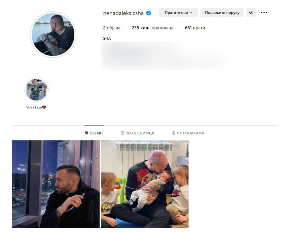 Samo nešto više od mesec dana nakon crkvenog venčanja u Kraljevu, reper i bivši zadrugar Nenad Aleksić Ša šokirao je svoje pratioce na društvenoj mreži Instagram. Naime, reper je obrisao sve fotografije sa svojom suprugom Vanjom i ostavio samo dve - jednu na kojoj je sam i drugu na kojoj je sa svojim bratancima.