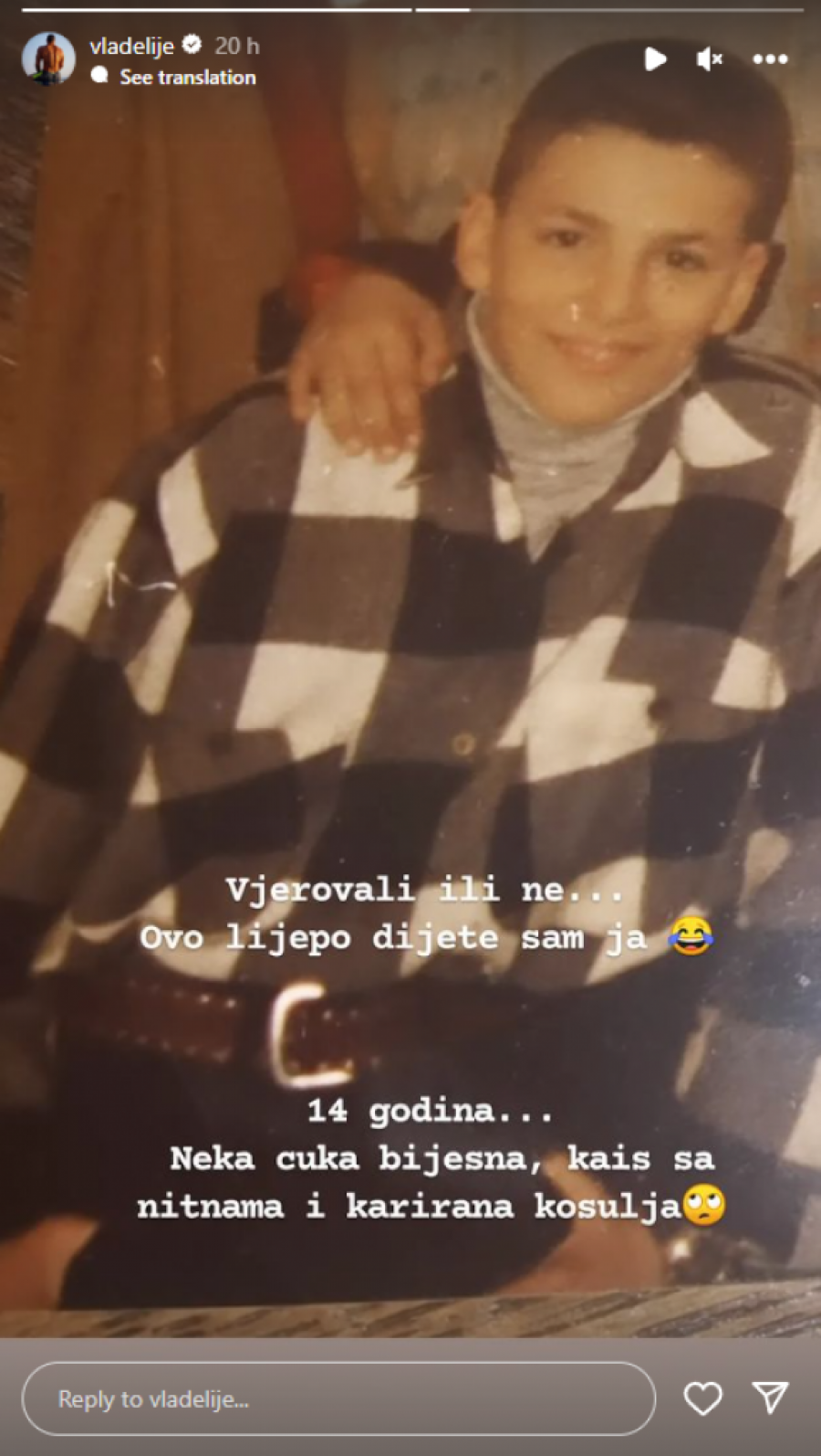 - Verovali ili ne, ovo lepo dete sam ja. 14 godina, neka čuka besna, kaiš sa nitnama i karirana košulja - napisao je Vladimir Tomović na Instagramu.