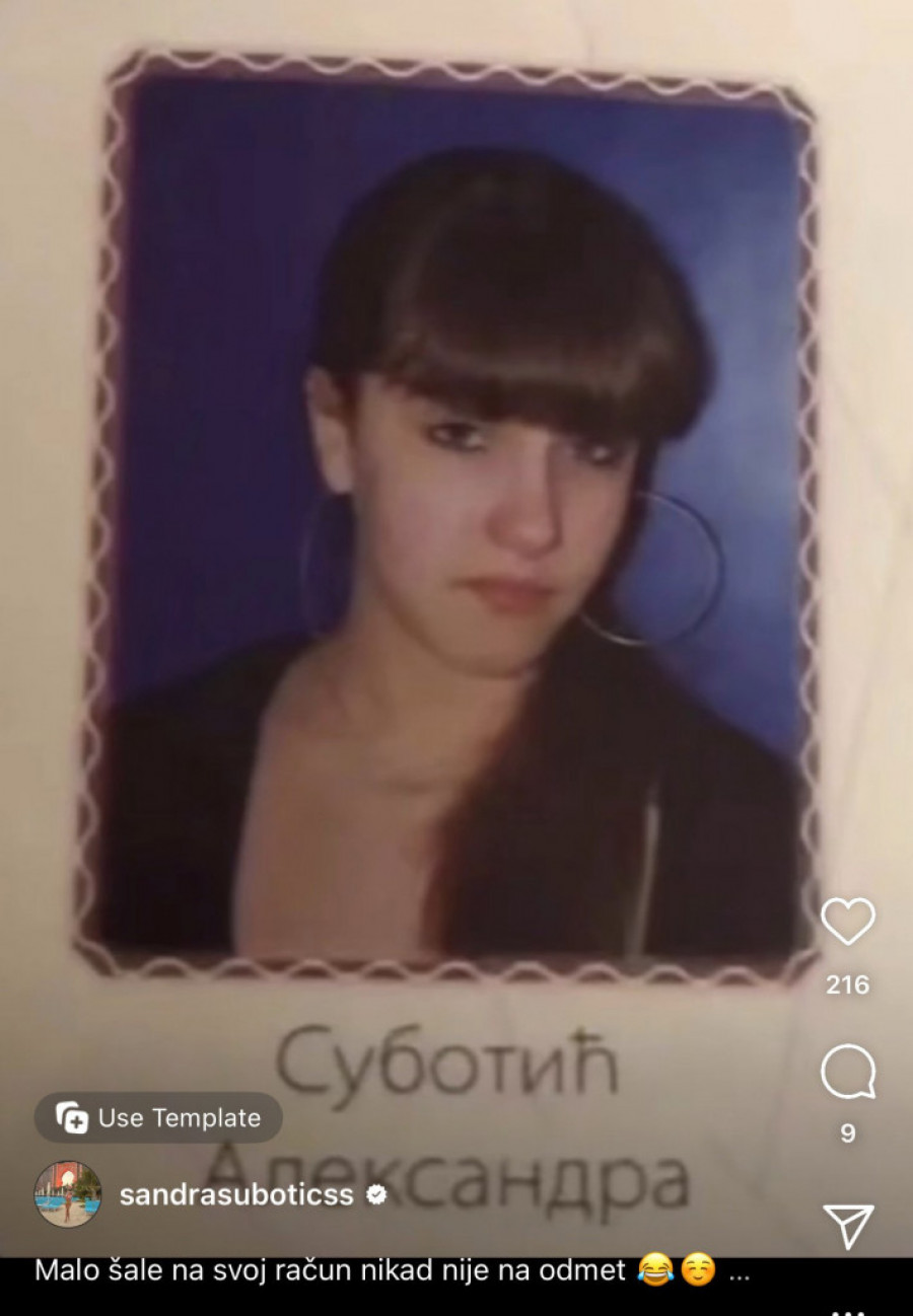 - Ovo sigurno niko drugi ne bi usudio da postavi. Moja najružnija slika iz puberteta - izvolite - napisala je Aleksandra i uz to podelila sliku iz srednje škole, pa dodala: