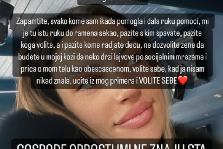 - Meni je drago što nakon svega ostajem pri sebi i ne dozvoljavam da me gnusne uvrede koje se iznose mesecima na moj račun ne dotiču. Svako govori o sebi! Zapamtite svako kome sam ikada pomogla i dala ruku pomoći mi je tu istu ruku do ramena sekao, pazite s kim spavate, pazite koga volite, a i pazite kome rađate decu. Ne dozvolite, žene, da budete u mojoj koži da neko drži "lajvove" po socijalnim mrežama i da priča o mom telu kao obeščašćenom, volite sebe kad ja nikad nisam znala, učite iz mog primera i volite sebe - napisala je Tara i dodala uz narednu fotografiju dopisivanja sa svojom bivšom svekrvom: