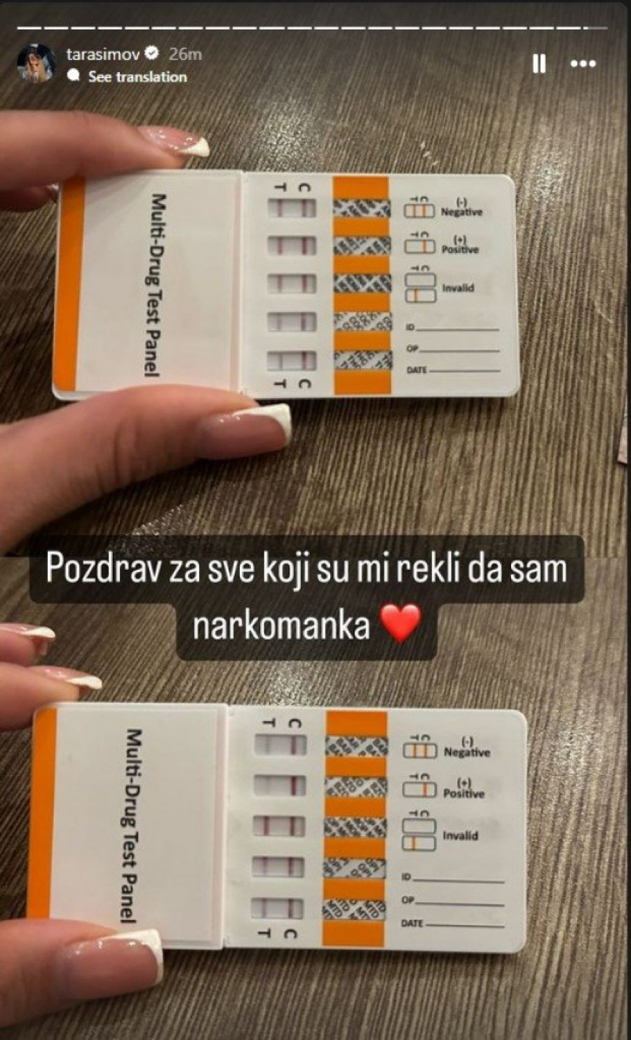 Bivša rijaliti učesnica Tara Simov nedavno je brutalno pretučena od strane bivšeg dečka Danila Raičevića, zbog čega je u žiži javnosti. Kako su mnogi sumnjali u to da koristi psihoaktivne supstance, ona je sada rešila da svima pokaže da je test na drogu negativan.