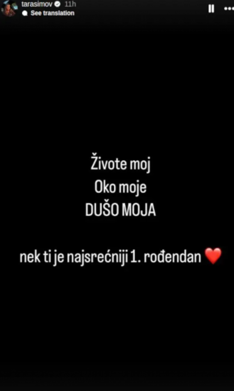 - Živote moj. Oko moje. Dušo moja. Nek ti je najsrećniji 1. rođendan - napisala je Tara na Instagram storiju.