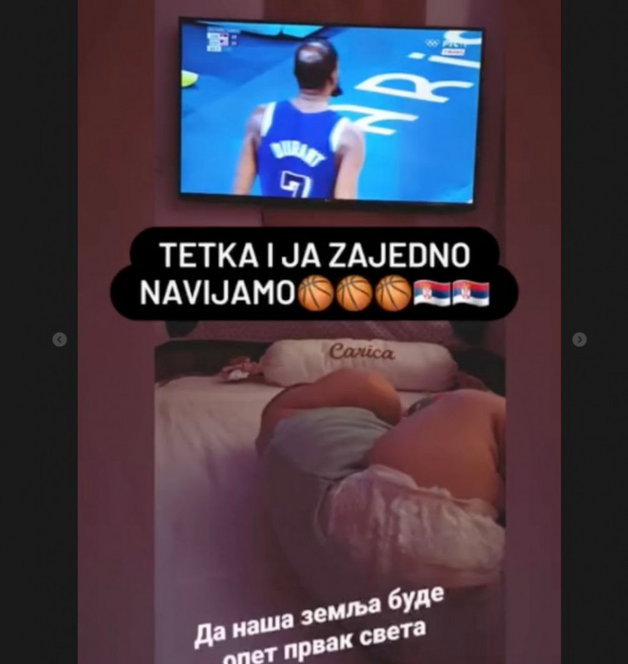 Meč je pratila i Aleksandra Nikolić sa ćerkom Leonom, a emotivne kadrove svoje sestre i Leone je podelila sa fanovima putem društvene mreže Instagram. Čini se da je bivša pobednica "Zadruge" rešila da vaspitava ćerku od malih nogu i uči je pravim stvarima. Srbija je svakako zemlja košarke, a mlada mama od samog starta gradi ćerkin sistem vrednosti.