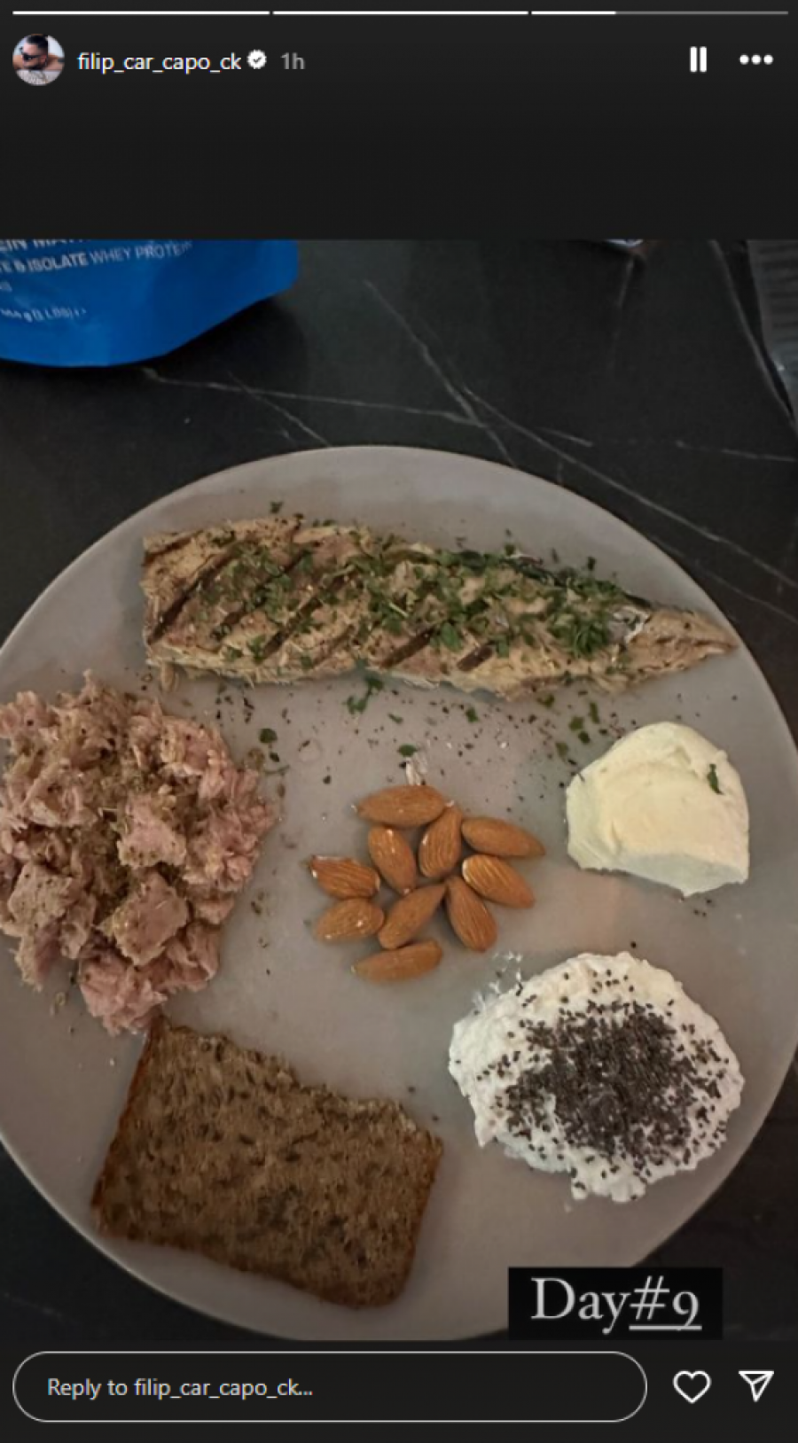 Filip, koji je u Beloj kući tokom svog učešća u rijalitiju često glumio velikog zavodnika, sada se posvetio unapređenju svog izgleda na ozbiljniji način. On je svojoj publici na Instagramu pokazao da je počeo sa dijetom koja traje već deveti dan. Na njegovim objavljenim fotografijama može se videti da je njegov tanjir prepun dijetalne hrane, koja uključuje orašaste plodove, grilovano meso, tunjevinu, sir i integralni hleb. Ovaj izbor hrane ukazuje na njegovu odlučnost da postigne željene rezultate u mršavljenju i oblikovanju tela, a mnogi su zaključili i da se takmiči sa svojom bivšom devojkom, Aleks, inače poznatom starletom.