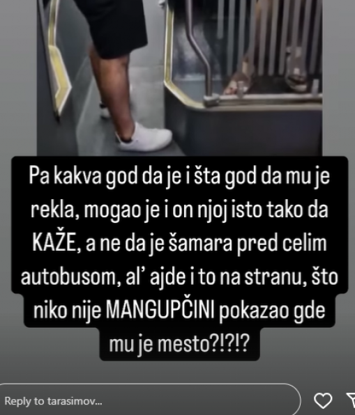 Na jednoj Instagram stranici pojavio se uznemirujuć snimak nasilja na kojem muškarac udara pesnicom devojku pred očima putnika. Snimak prikazuje svađu između njih dvoje, koja ubrzo prelazi u pretnje i povike.