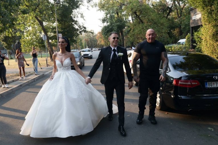 Trudna Jovana se odlučila za efektnu, glamuroznu venčanicu koja je mnogima delovala kao da je izašla iz bajke, dok je njen izabrani muž Bogdan, bivši dečko pevačice Svetlane Cece Ražnatović, izabrao elegantno crno odelo. Za dodatni šarm, Bogdan je nosio sunčane naočare, koje su ga štitile od jakog septembarskog sunca. Svi prisutni su mlade i mladoženje pozdravili su ih gromoglasnim aplauzom, a brižni mladoženja je pomogao svojoj supruzi sa šlepom venčanice koji je pravio poteškoće jer se vukao po podu.
