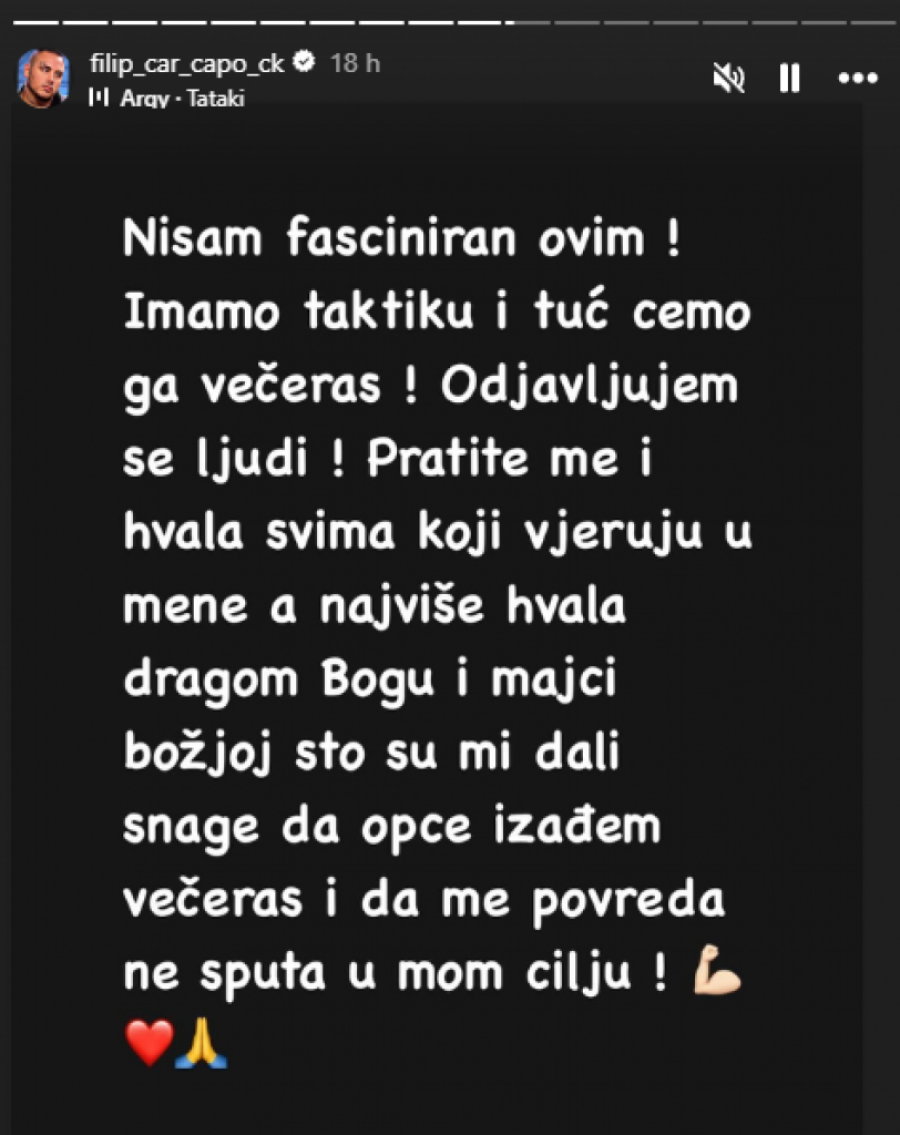 - Da mi nije puklo rebro neki dan sigurno bih ga pobedio - napisao je Filip Car.