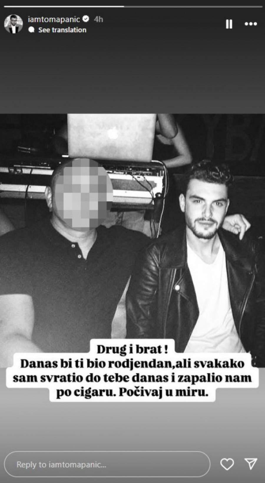 - Drug i brat! Danas bi ti bio rošđendan, ali svakako sam svratio do tebe danas i zapalio nam po cigaru. Počivaj u miru - stajalo je u opisu objave koju je podelio sa svojim pratiocima. Ova objava je izazvala brojne reakcije i podršku od njegovih fanova i prijatelja, koji su mu uputili reči utehe u ovom teškom trenutku.