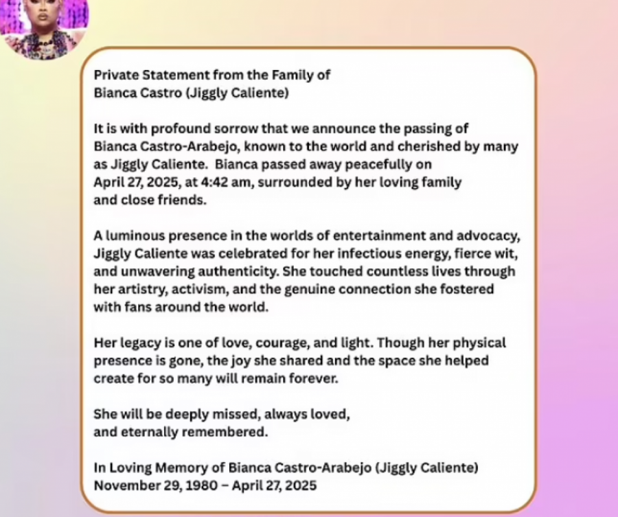 U svetu zabave i drag umetnosti, tragična vest o smrti Džigli Kaliente, poznate ličnosti iz serije RuPaul’s Drag Race, šokirala je mnoge. Džigli Kaliente, čije je pravo ime Bjanka Kastro-Arebejo, preminula je u nedelju, 27. aprila 2025. godine, u ranim jutarnjim satima, okružena porodicom i prijateljima. Imala je samo 43 godine, a njena smrt došla je samo nekoliko dana nakon amputacije desne noge usled teške infekcije. Ova vest je potvrđena u emotivnoj objavi njene porodice na Instagramu, koja je izrazila duboku tugu zbog gubitka voljene Bjanke, prenosi dailymail.co.uk.