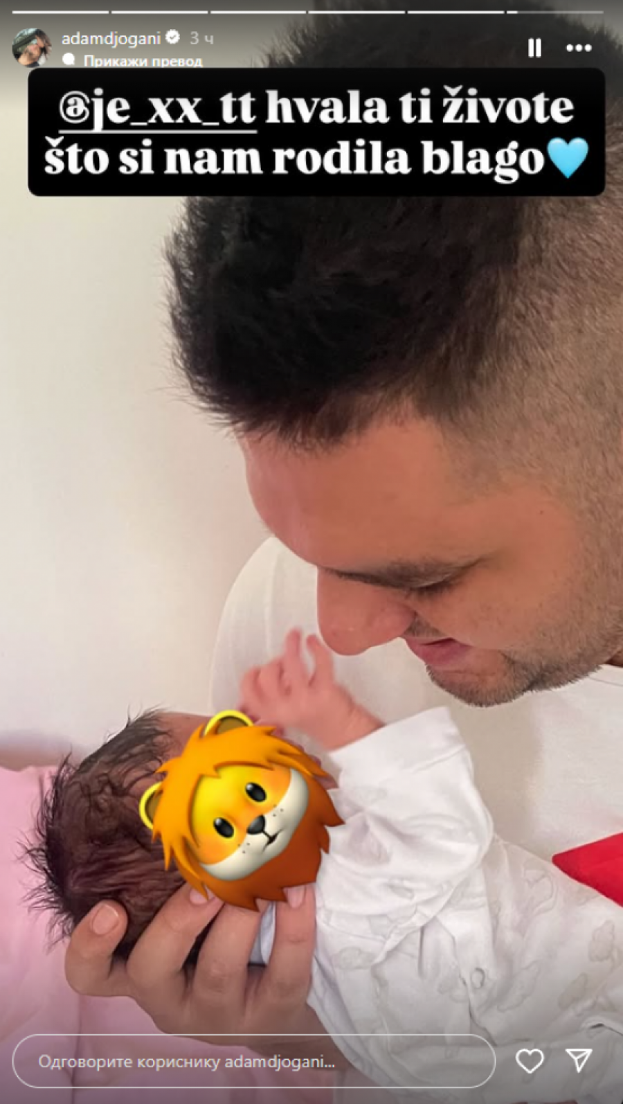 Adam Đogani, poznati učesnik rijalitija i brat Lune Đogani, doživeo je veliki životni trenutak – postao je otac malog Lava. Ova srećna vest obeležava novu etapu u njegovom životu, a Luka Đogani nije propustila priliku da podeli ovaj trenutak sa svojim pratiocima na društvenim mrežama. Njena objava, na kojoj drži svog bratanca u naručju i hrani ga, mnoge je raznežila, pokazujući koliko je srećna što je postala tetka.