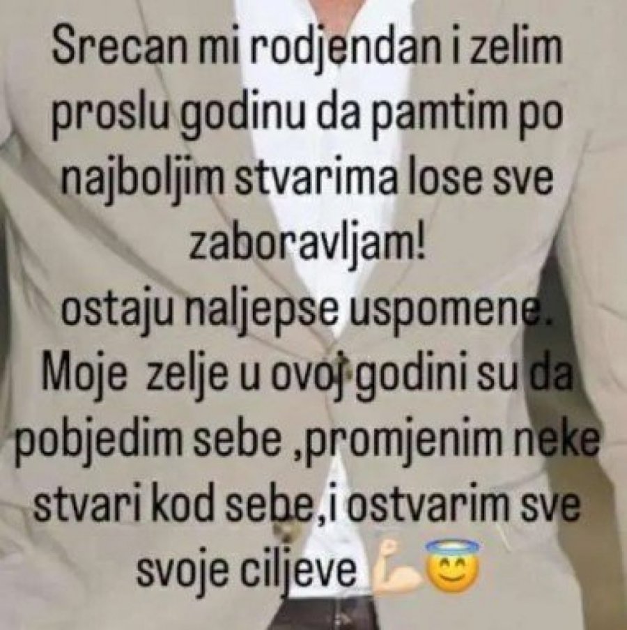 - Moje želje u ovoj godini su da pobedim sebe, promenim neke stvari kod sebe i ostvarim sve svoje ciljeve - napisao je bivši rijaliti učesnik.