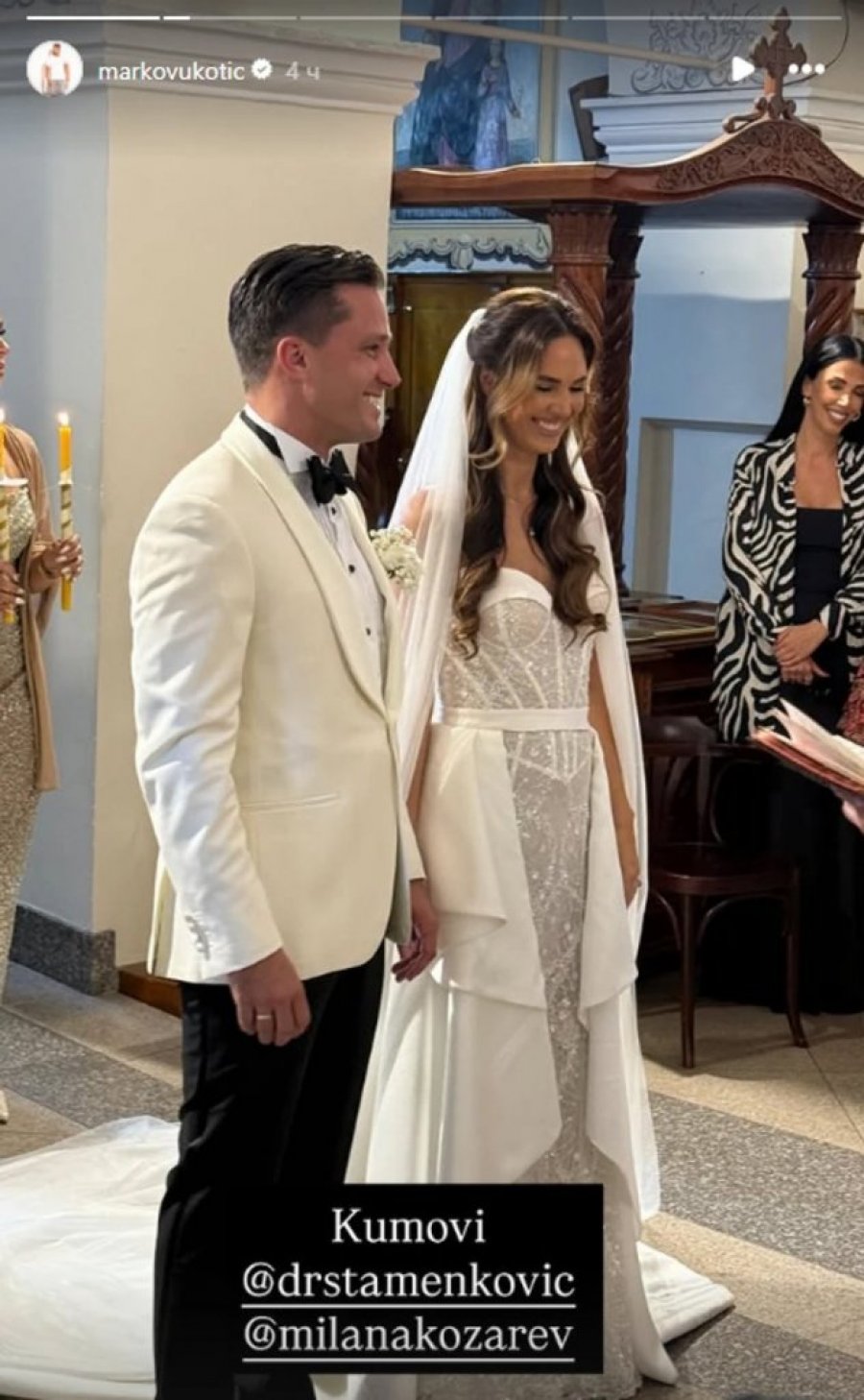 Boris Stamenković, poznati stomatolog i bivši učesnik rijalitija "Farma" i bivši momak Katarine Grujić, danas je uplovio u bračne vode. Njegova izabranica, Milana Kozarev, postala je njegova supruga nakon što su oboje izgovorili sudbonosno "da" u crkvi. Ovaj poseban trenutak podelio je Marko Vukotić, takođe bivši rijaliti učesnik, koji je na društvenim mrežama objavio sliku mladenca i mlade uz kratak opis "Kumovi".