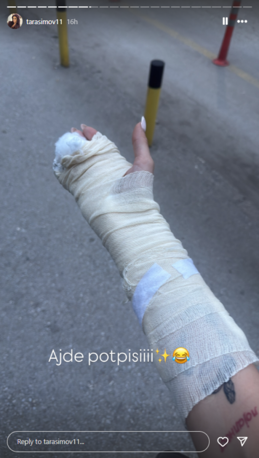 Bivša zadrugarka Tara Simov se povredila, nakon čega je završila u bolnici. Ona je zabrinula pratioce na društvenoj mreži Instagram kad je objavila fotografiju ispred Hirurške kline u Severnoj Makedoniji, a zatim i svoju ruku u zavojima. Kako je dobila mnogo poruka, odmah se oglasila i otkrila šta se desilo.