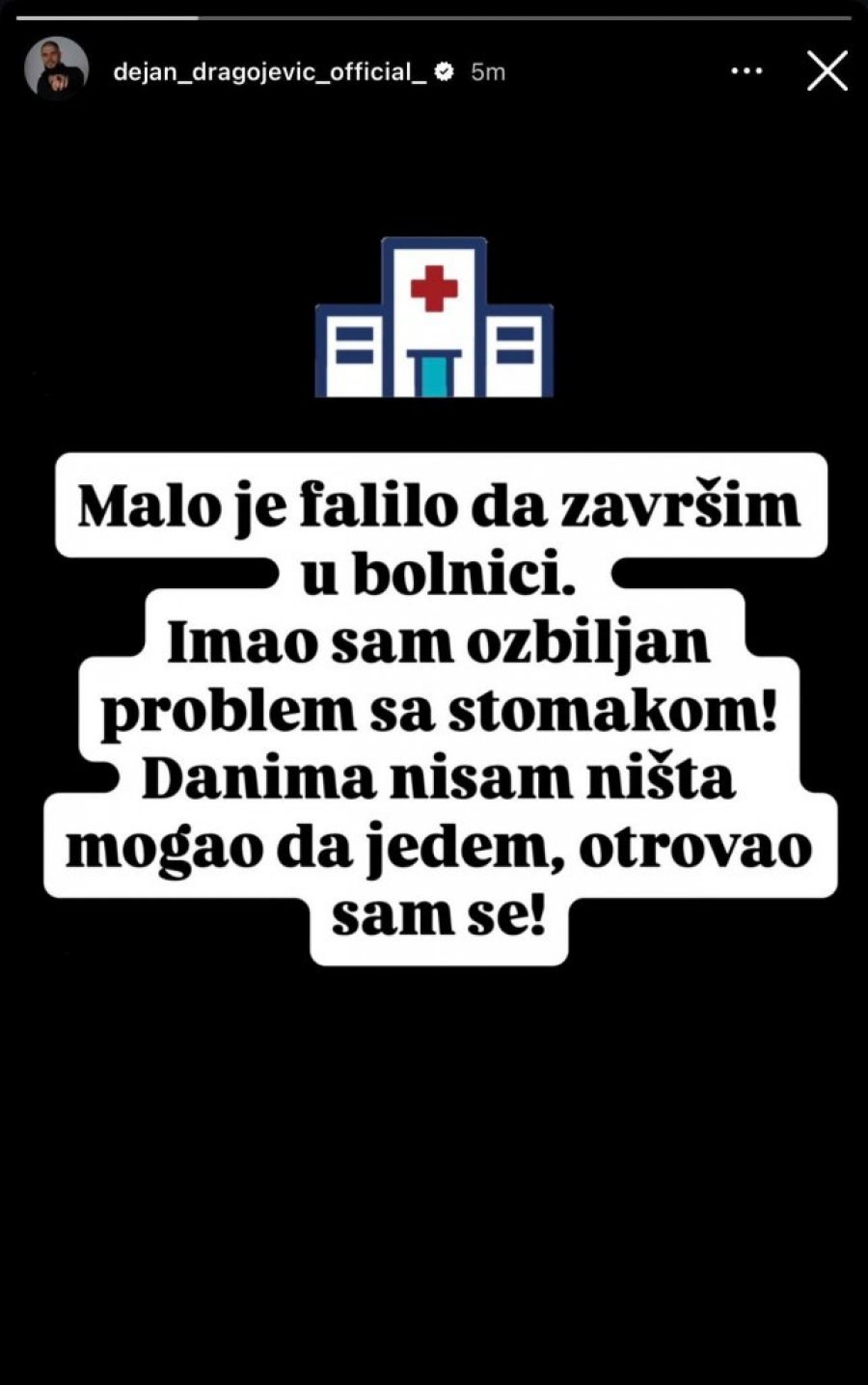 Bivši učesnik Zadruge, Dejan Dragojević otrovao se, objavio je na svom instagram profilu.