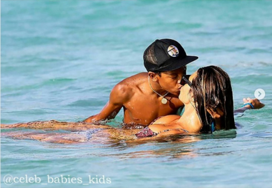 Top model Hajdi Klum je uhvaćena na plaži kako se ljubi sa svojim sinom Henrijem u usta.