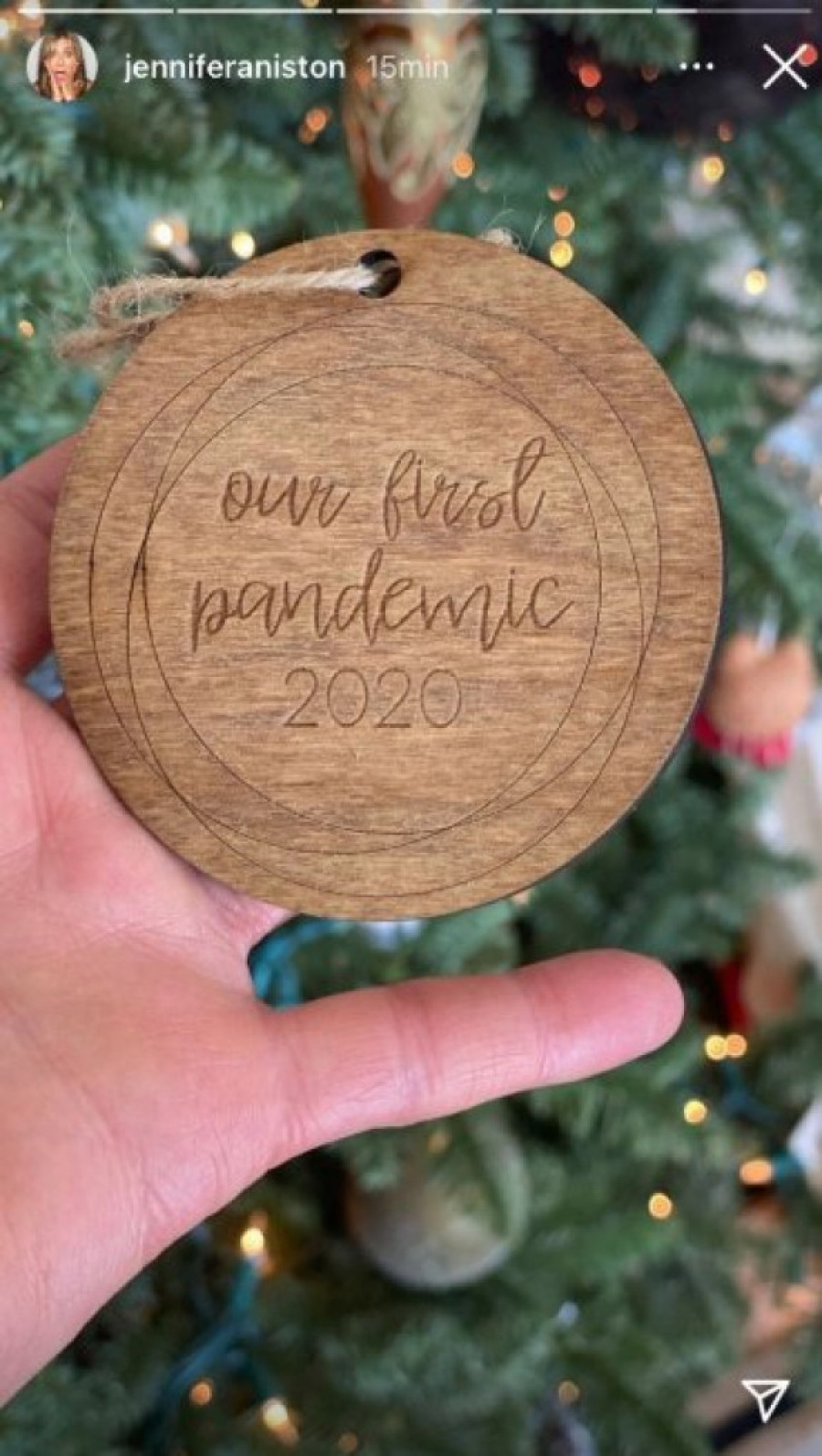 Foto: facebook.com/@JennJoannaAnistonGlumica je svoju jelku ukrasila drvenim ukrasom na kojem piše “naša prva pandemija 2020”, što je uvredilo mnoge.