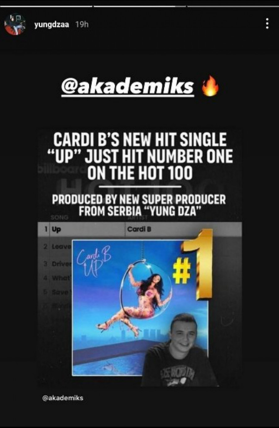 Foto: PromoSa pesmom „Up”, iza koje stoji dvadesetpetogodišnji producent iz Srbije poznat kao Jang Dža, reperka Kardi Bi po peti put se popela na sam vrh prestižne Bilbordove hot 100 liste. Pre ovoga, poslednji put je na ovom mestu uživala 2017. godine, s numerom „Bodak Yellow”.