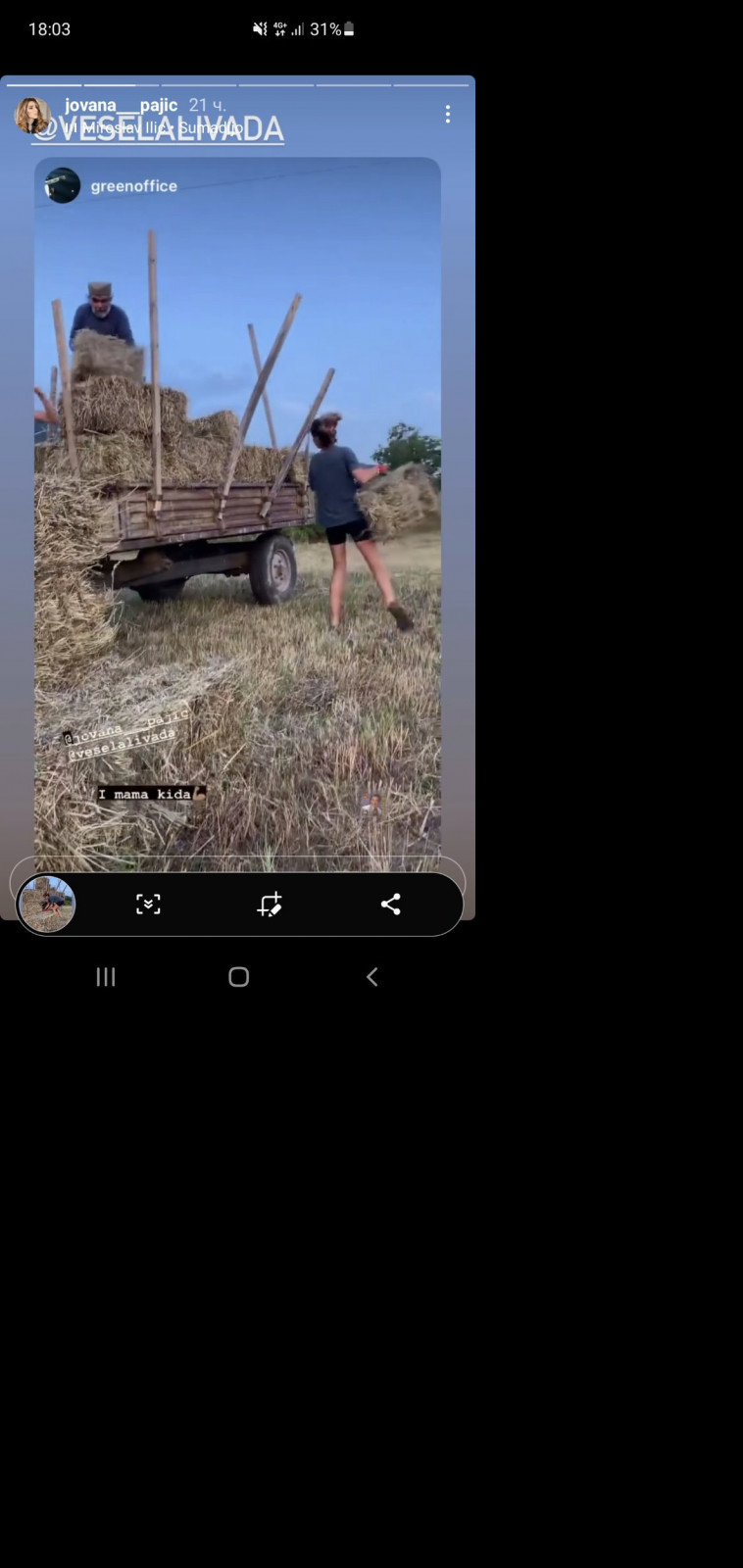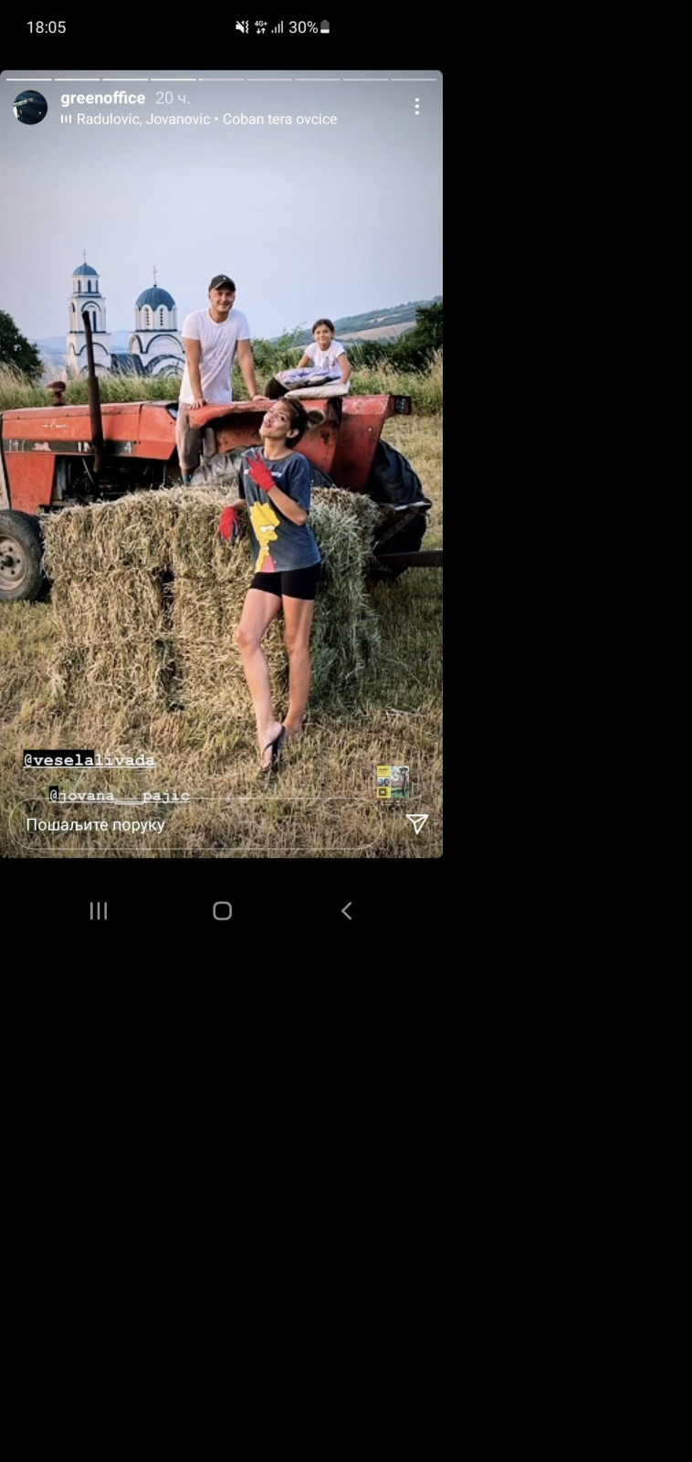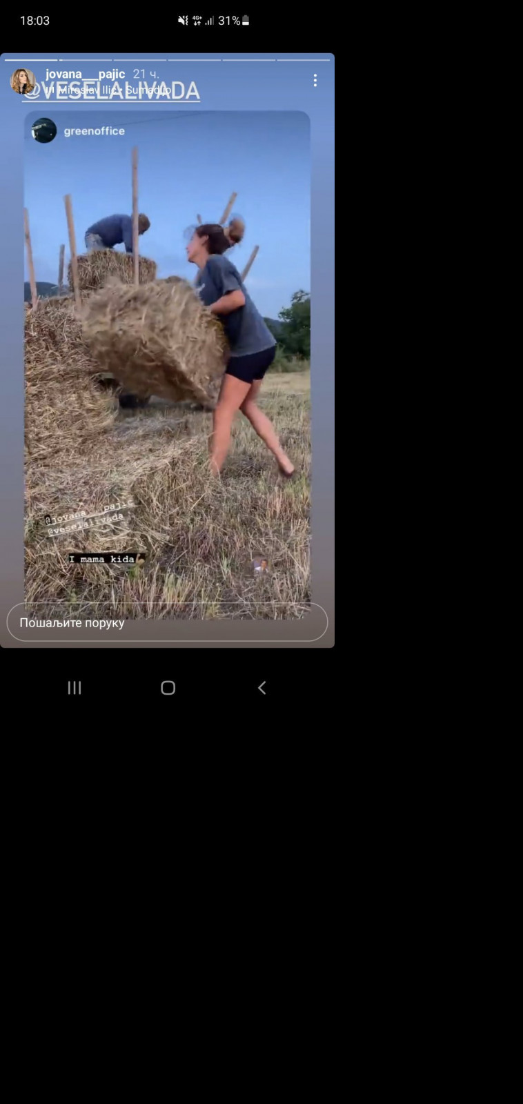 Naime, Sale je na svom Instagram profilu objavio slike na kojima se vidi da on i Jovana sa porodicom vreme provode na selu i da pomažu u svim tekućim poslovima. Ako je sudeći po fotografijama, Jovana je bila vrednija, pa je i plastove sena sama podizala i ređala u traktor. Njih dvoje se ne stide da odu iz gradske gužve i posvete se mirnijem, ali i fizički napornijem životu, koje nosi selo.