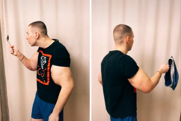 Ovaj 25-godišnjak iz Rusije prošao je brojne korektivne operacije, uključujući i jednu prošlogodišnju za uklanjanje grudvica stvrdnutog želea i „mrtvog mišića“ sa bicepsa.